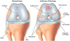 Osteoarthritis is the most common form of arthritis in the knee. It is a degenerative,”wear-and-tear” type of arthritis that occurs most often in people 50 years of age and older, but may occur in younger people, too.
